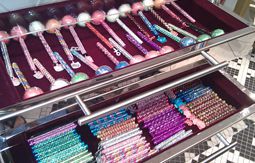 アメリカでは主流となっている量り売りのキャンディーショップで、似たようなお店は全米にも沢山あるがシュガーファクトリーの人気商品はなんと言ってもそのオリジナルのロリポップ。ロリポップとは・・・?簡単に説明すると日本でもすっかりお馴染みとなった”チュッパチャップス”のような棒つきのキャンディー。しかし、シュガーファクトリーのロリポップは可愛いデコレーションが施されており、スワロフスキー製のデコレーションが施された物や最近はハロー・キティーとのコラボも大人気。可愛い物に目が無い、女の子には大人気!!
